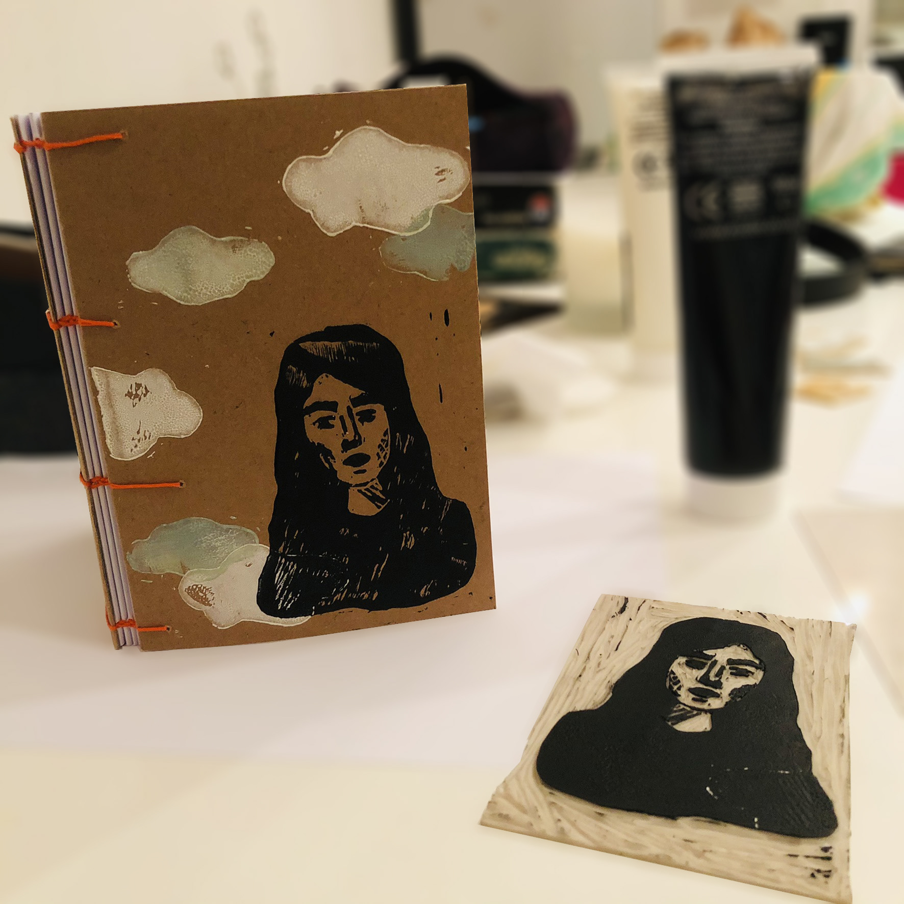 Fabrication d'un carnet avec reliure.